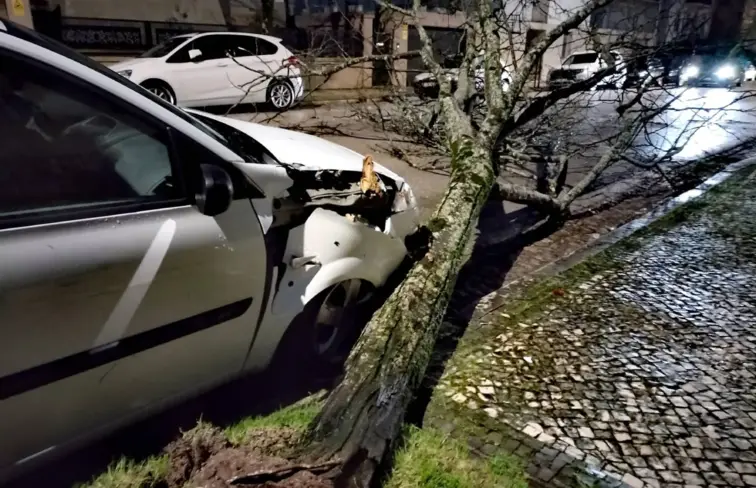 Um condutor de um veículo pesado ficou ferido ligeiramente em Castelo Branco após a queda de uma árvore sobre o camião em que seguia. O acidente ocorreu cerca das 7 horas e a vítima foi transportada para o Hospital Amato Lusitano, segundo os Bombeiros Voluntários de Castelo Branco. As equipas de emergência estão a dar prioridade à desobstrução de vias e estradas sem alternativas.