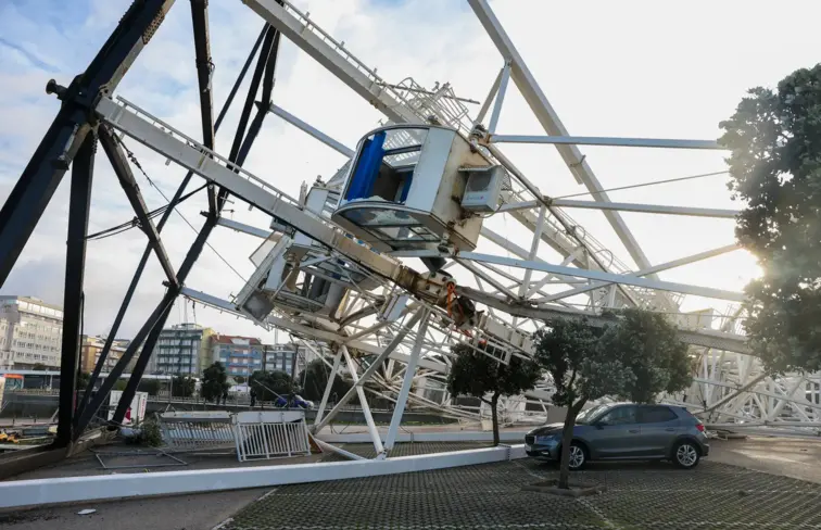 Figueira da Foz também não escapou ao mau tempo durante esta madrugada e acumulou vários estragos, incluindo a queda da roda gigante instalada na marginal. Também parte do telhado da antiga Universidade Internacional desabou, atingindo pelo menos sete viaturas. Registaram-se ainda danos na esquadra da PSP e o corte da antiga Estrada Nacional 111, entre Maiorca e Montemor-o-Velho, devido à queda de árvores na chamada Estrada das Pontes.