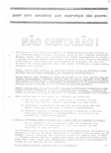 Foi num aparelho desses que se produziu, para distribuição, um comunicado que pode ser lido na exposição, partilhado por Manuel Matos Fernandes, "engenheiro civil da FEUP, na altura estudante onde hoje é a reitoria" da Universidade do Porto. O texto apelava a um boicote ao I Festival Internacional de Coros Universitários de 1973, que "juntava um conjunto de coros não só nacionais com ligações diretíssimas ao regime, mas também coros de ex-colónias e de países em ditadura ou em apartheid".
