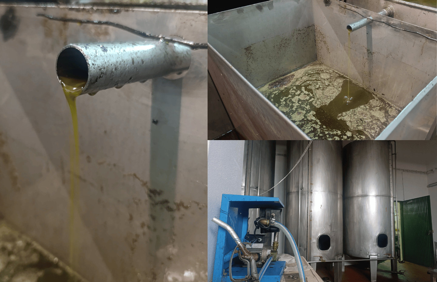 “O azeite fica ali 48 horas a decantar, de forma natural. Primeiro, começa a vir ao cimo, fica mais limpo de água, muda-se para outra tarefa e descansa. Depois, armazenamos nos depósitos [com cerca de 4 mil litros cada] e é aí que faz a decantação final. Como o azeite é decantado naturalmente, precisa de muito tempo para purificar e quanto mais tempo estiver a purificar melhor, menos borras leva”, detalha Carlos Filipe.