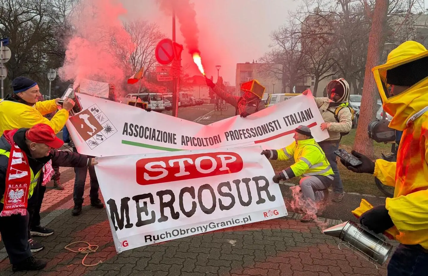 No terreno, o cenário é de tensão, com centenas de tratores na "Ponte da Europa", que liga França à Alemanha, paralisando o trânsito na zona internacional. Também foram cortadas várias estradas nas imediações do Parlamento. Os manifestantes gritaram “Stop Mercosul” e “Von der Layen out”, enquanto acenderam tochas e petardos.