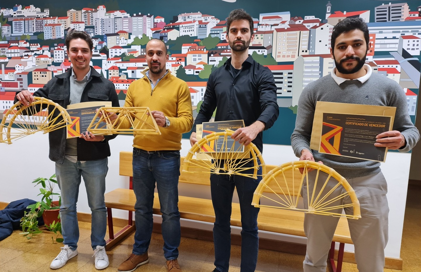 A peça apresentada por Jorge Panagopoulos, aluno de doutoramento em Engenharia Aeronáutica, suportou 57 quilos e venceu a categoria de resistência. Um trabalho em colaboração com Pedro Oliveira, Rafael Domingos e João Antunes que, em conjunto, construíram para o concurso quatro pontes, uma para ser avaliada na componente estética. A cada uma, dedicaram cerca de oito horas na construção.