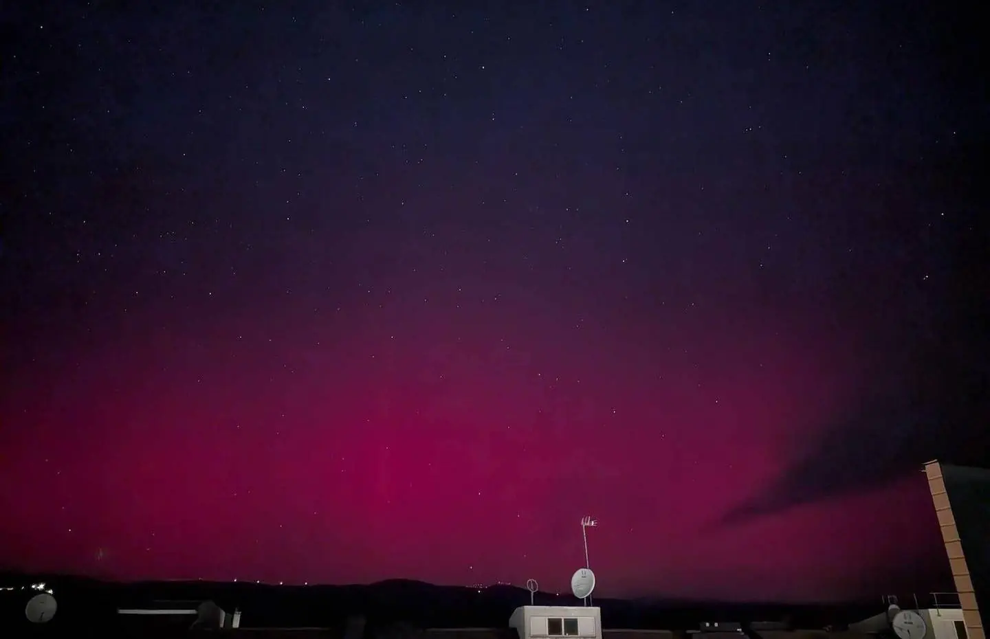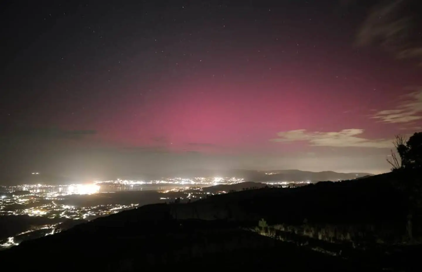 Foto: Aurora boreal vista em Macedo de Cavaleiros (Facebook/Meteo Trás os Montes - Portugal)