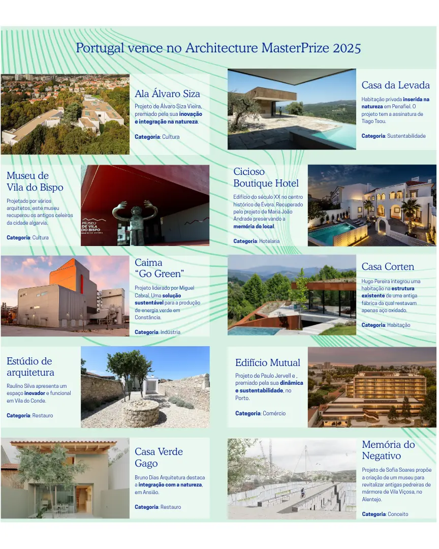 Na edição deste ano do Architecture MasterPrize houve mais projetos com selo português distinguidos pelo júri. No total são dez os projetos distinguidos. E na categoria de arquitetura cultural, Álvaro Siza Vieira também foi premiado com o projeto da Ala em nome prório em Serralves.