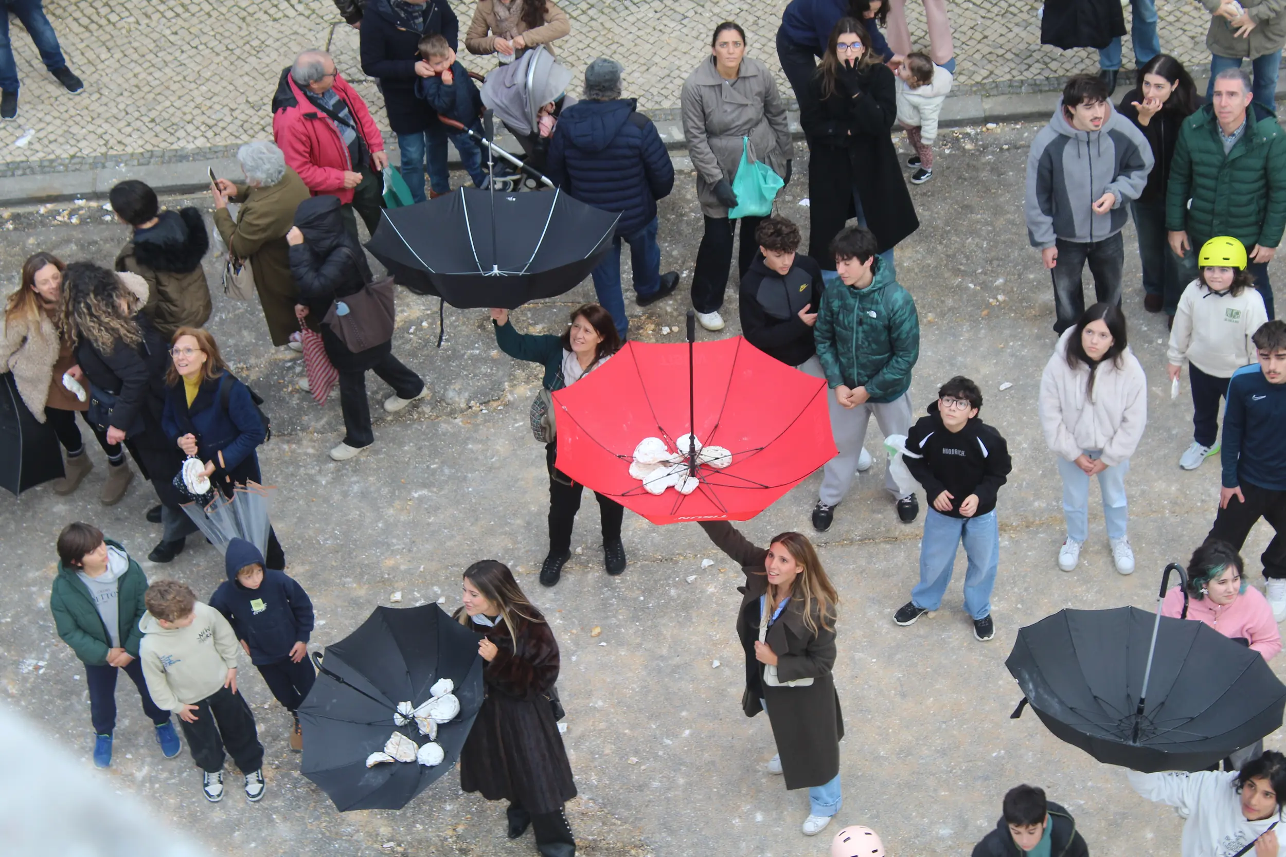 Num fim de semana em que a chuva ameaça, os guarda-chuvas servem também para apanhar os doces que vão caindo. Há ainda quem venha de capacete e quem se vá desviando ligeiramente. É o caso de Cidália Pereira, de Coimbra, e que ficou a conhecer pelo genro que é Aveirense: “ Não quero atirar, estou aflita que me caiam em cima, estou-me sempre a desviar. Mas é uma tradição bonita, para o ano estou cá outra vez, com um capacete. É uma festa lindíssima.”